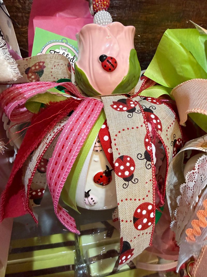 Ladybugs, grasshoppers, watering cans- things to remind us of Each set is hand-stitched with love and whimsy.